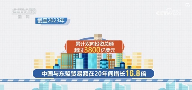 截至2023年,中國(guó)與東盟貿(mào)易額在20年間增長(zhǎng)16.8倍,累計(jì)雙向投資總額超過(guò)3800億美元。
