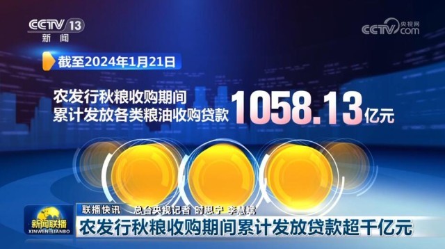 截至2024年1月21日,農(nóng)發(fā)行秋糧收購期間累計(jì)發(fā)放各類糧油收購貸款1058.13億元,其中主要發(fā)放中晚稻收購貸款448.63億元、玉米收購貸款395.96億元、大豆收購貸款57.79億元,有效維護(hù)了糧食市場穩(wěn)定。