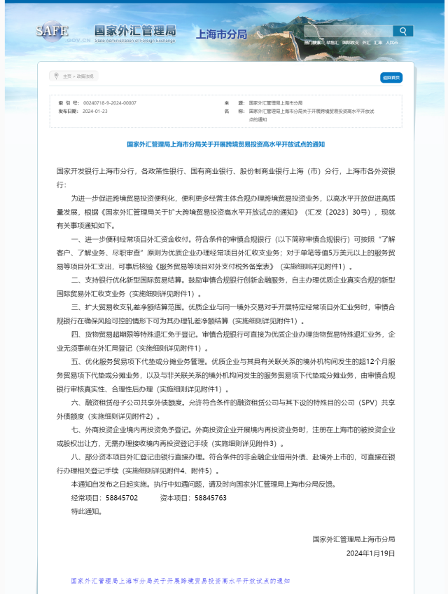 央視網(wǎng)消息:1月23日,國家外匯管理局上海市分局發(fā)布《關(guān)于開展跨境貿(mào)易投資高水平開放試點的通知》。