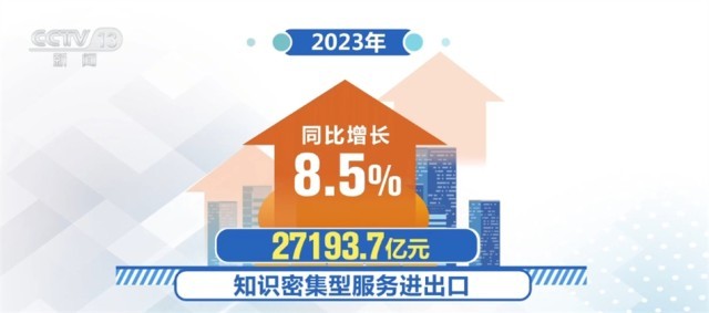 數(shù)據(jù)顯示,2023年全年我國服務(wù)進出口總額65754.3億元人民幣,同比增長10%。知識密集型服務(wù)貿(mào)易較快增長。2023年,知識密集型服務(wù)進出口27193.7億元,同比增長8.5%。其中,知識密集型服務(wù)出口增長最快的領(lǐng)域為保險服務(wù),增幅達67%。知識密集型服務(wù)進口增長最快的領(lǐng)域為個人、文化和娛樂服務(wù),增幅達61.7%。知識密集型服務(wù)貿(mào)易順差3676.7億元,同比擴大423.5億元。