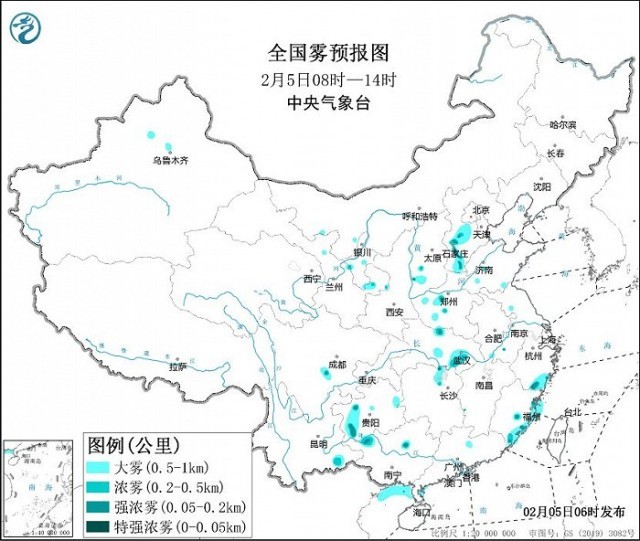 中央氣象臺(tái)2月5日06時(shí)繼續(xù)發(fā)布大霧黃色預(yù)警