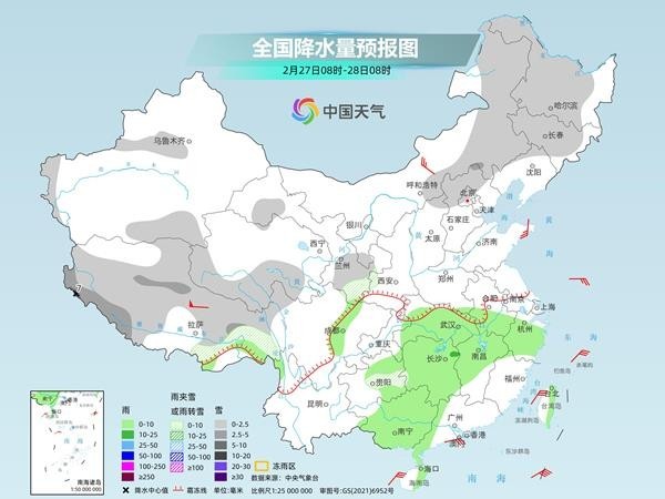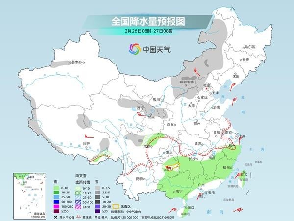 氣象部門提醒,南方大部陰雨頻繁的天氣將延續(xù)至3月初,其中,后天至3月1日,降水又將增強,需關注路面濕滑、能見度下降等對春運出行等方面的不利影響。華北、東北部分地區(qū)今明天將有降雪,公眾雪天外出請留意交通安全。