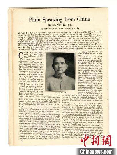 孫中山《中國人之直言》。廣州孫中山大元帥府紀(jì)念館 供圖
