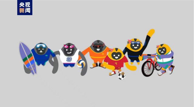 在形象色彩選擇上,沙灘排球猿,參考海浪的藍(lán)色與浪花的白色,粉色腰帶則體現(xiàn)熱情與活力;滑翔傘猿是代表勇氣的金色與代表視野的橙色的結(jié)合,展現(xiàn)極限運動員的能量與勇氣;沖浪猿的配色參考自碧海藍(lán)天的概念,帆船猿則參考自深海浪濤的概念,均展現(xiàn)海南豐富的海洋資源;足球猿參考中國女足的隊服顏色,突出紅敢爭先的拼搏精神;自行車猿是優(yōu)雅的紫色、熱帶雨林的綠色和代表無限可能的白色的結(jié)合,環(huán)島騎行,成為一道靚麗的風(fēng)景線。