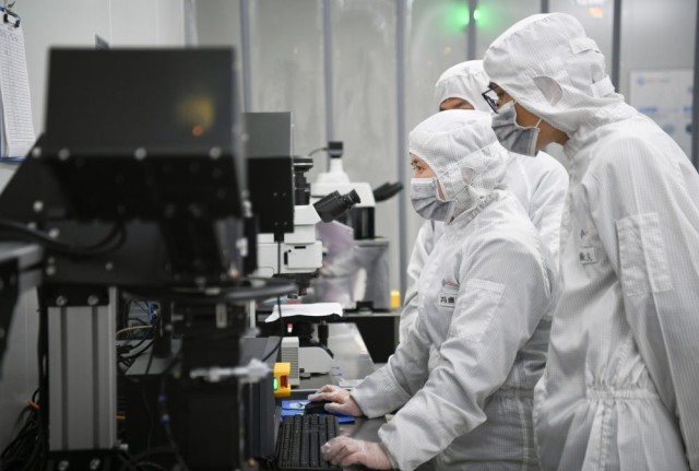 2024年3月4日,技術(shù)人員在陜西光電子先導(dǎo)院科技有限公司測試晶圓。新華社記者 張博文 攝