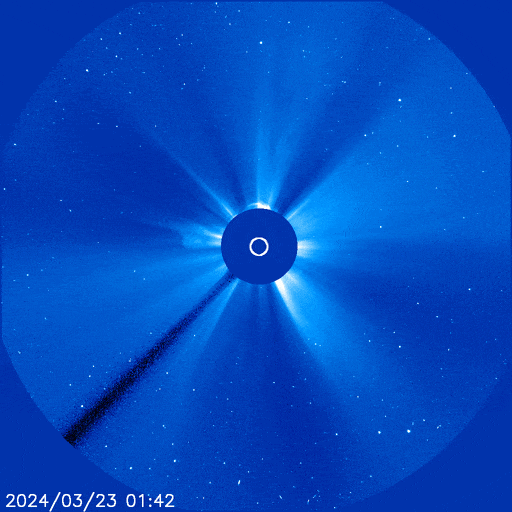 再加之此次日冕物質(zhì)拋射過程發(fā)生的位置幾乎正對地球。從地球看去,噴發(fā)物形成一個圓面,也就是“全暈”。此類爆發(fā)活動噴出的太陽物質(zhì)相對地球速度快、覆蓋度高,可能會引起比較強(qiáng)的地磁活動。