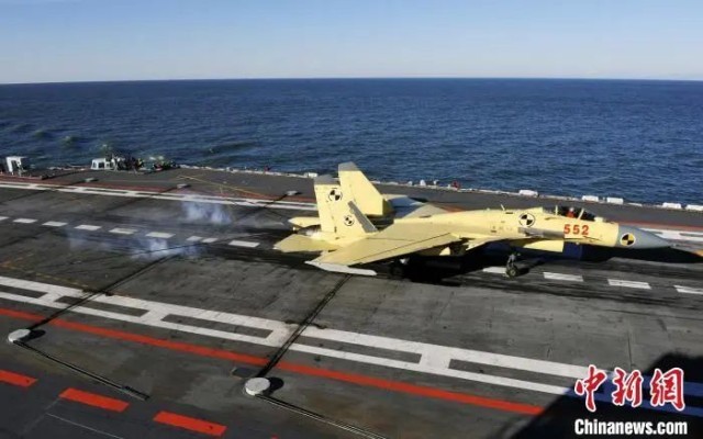 2012年11月23日,殲-15艦載戰(zhàn)斗機首次在遼寧艦上成功著艦。胡鍇冰 攝