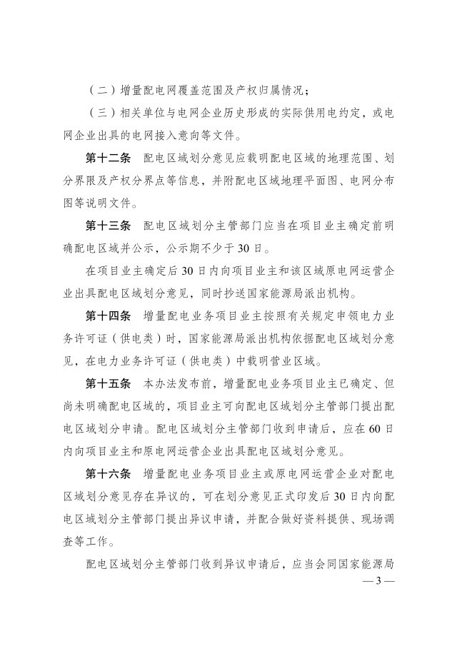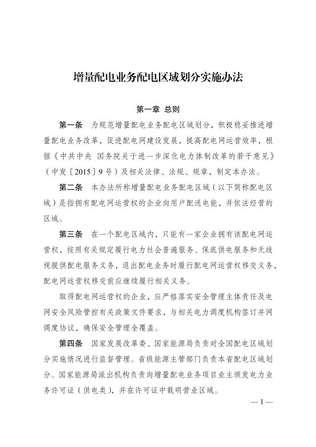央視網(wǎng)消息:據(jù)國(guó)家發(fā)展改革委、國(guó)家能源局,為規(guī)范增量配電業(yè)務(wù)配電區(qū)域劃分,積極穩(wěn)妥推進(jìn)增量配電業(yè)務(wù)改革,國(guó)家發(fā)展改革委、國(guó)家能源局修訂了《增量配電業(yè)務(wù)配電區(qū)域劃分實(shí)施辦法》。