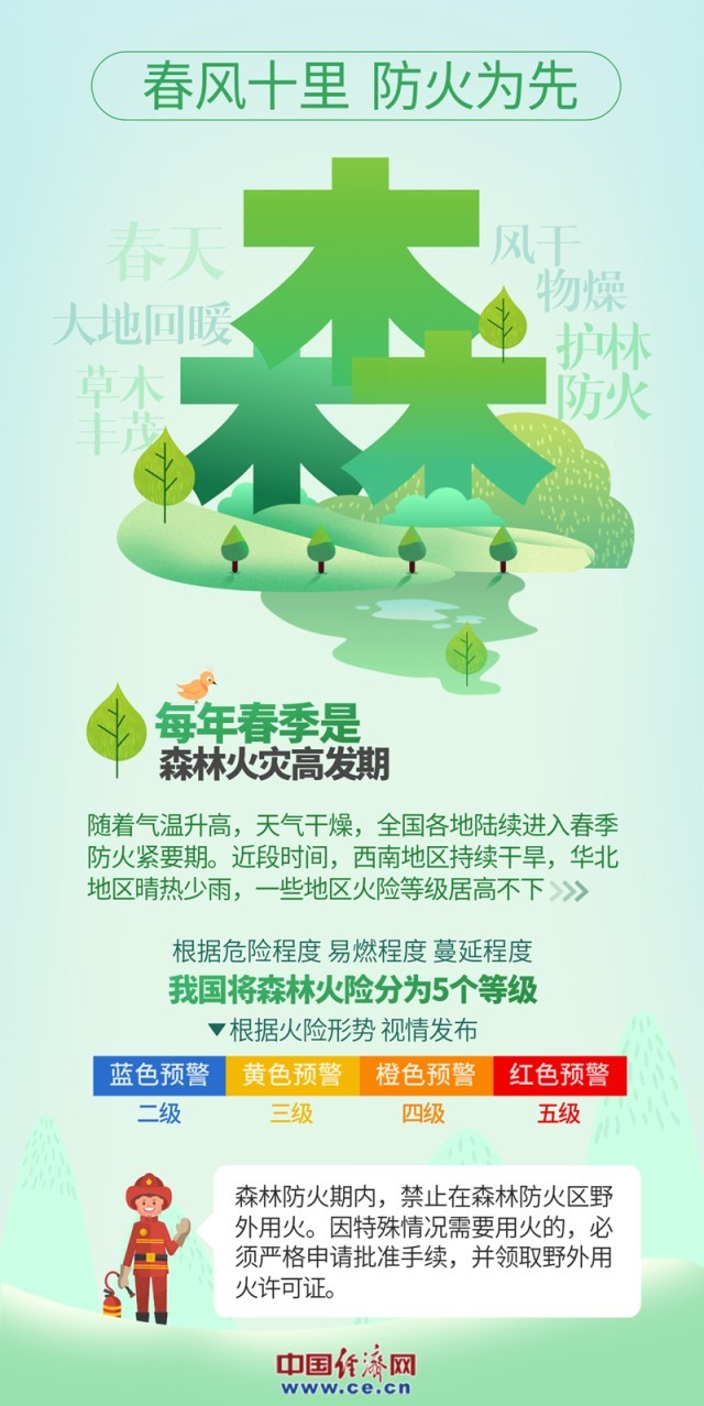 中國經濟網(wǎng)北京4月3日訊(記者 楊秀峰 李冬陽 景遠)近期,春耕生產、踏青旅游、民俗祭祀等活動逐漸增多,一些地區(qū)接連發(fā)生森林火災;一些地區(qū)火險等級居高不下,全國各地陸續(xù)進入春季防火緊要期,防滅火形勢嚴峻復雜。