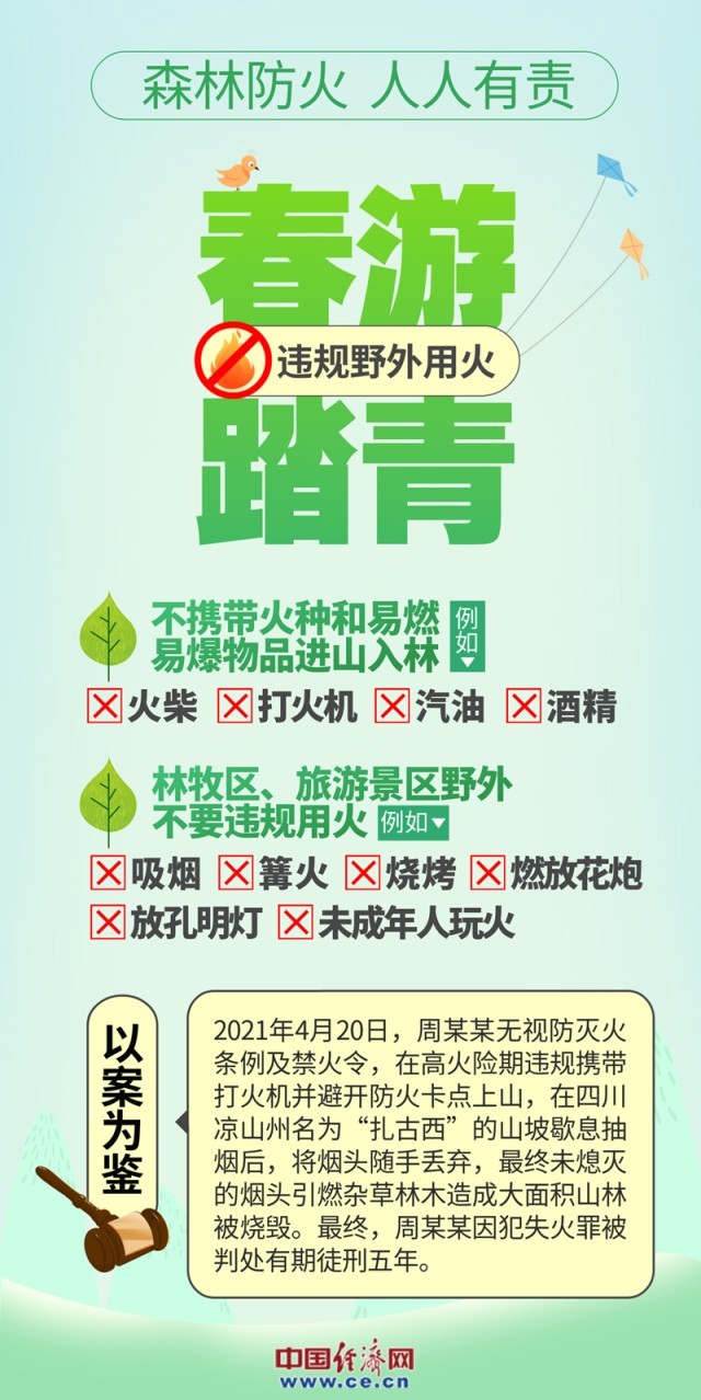 數(shù)據(jù)顯示,超九成的森林火災都是由人為因素引發(fā)。全面加強森林防火工作,確保森林資源和生態(tài)環(huán)境的安全,是每個公民的責任。希望全社會增強護林防火意識,牢記森林防火“十不要”,從我做起,從小事做起,共同守護綠色家園。