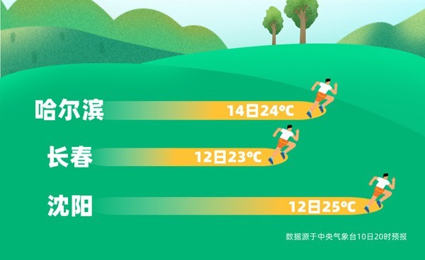 其中,14日黑龍江中東部和吉林東部甚至可能挑戰(zhàn)同期最暖紀錄。像哈爾濱,14日最高氣溫24℃,較常年同期大幅偏高10℃左右。
