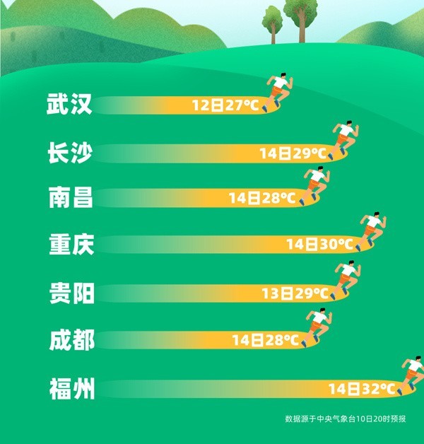 而且未來南方夜間最低氣溫也是穩(wěn)中有升,重慶、南昌、福州等地13日以后的最低氣溫可能達到或超過20℃,或開啟入夏進程。