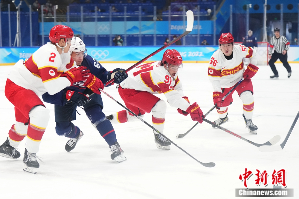 圖為冰球男子小組賽:中國隊(duì)對(duì)陣美國隊(duì)。中新社記者毛建軍攝