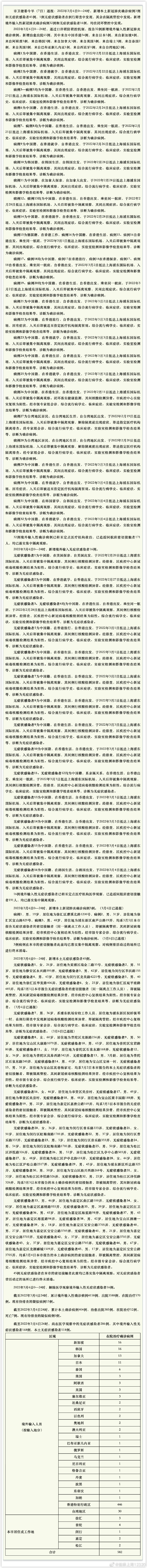 中新網3月7日電 據(jù)上海市衛(wèi)生健康委員會官方微博消息,3月6日0-24時,上海新增本土確診病例3例和無癥狀感染者45例。
