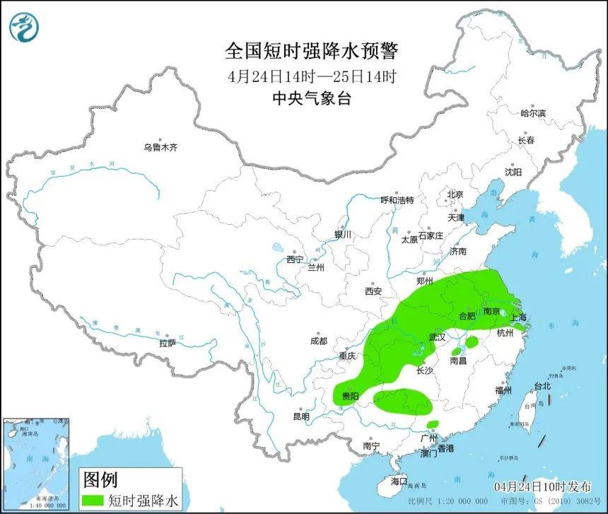 除了強(qiáng)降雨,黃河以南地區(qū)還將遭遇今年來最大范圍的強(qiáng)對流天氣,4月24日傍晚到夜間,河南、湖北、湖南、貴州等地將出現(xiàn)短時(shí)強(qiáng)降雨,局地還有8至9級(jí)的雷暴大風(fēng)天氣,貴州還需警惕冰雹;25日強(qiáng)對流影響區(qū)域?qū)|移,主要將集中在湖南、江西、江蘇等地。