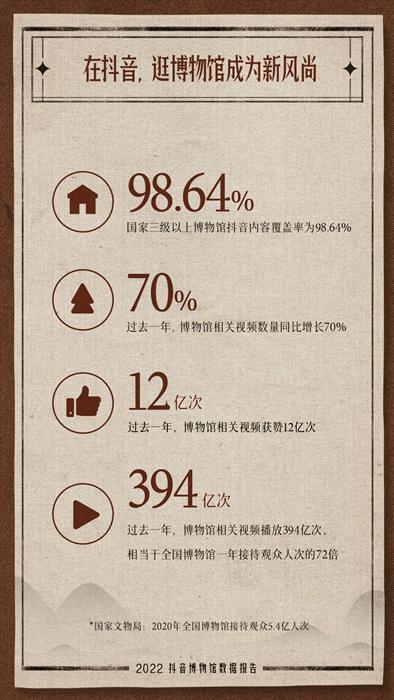 報(bào)告顯示:全國(guó)三級(jí)以上博物館抖音內(nèi)容覆蓋率達(dá)98.64%