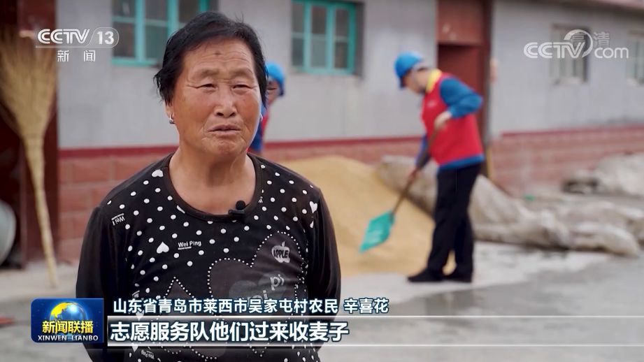 在山東萊西,66萬多畝小麥進入集中收獲期,當?shù)?0多家社會化服務組織和志愿服務隊活躍在麥收一線。吳家屯村農(nóng)民辛喜花的孩子在外打工,在志愿服務隊幫助下,她家3畝多小麥不到一小時就收獲完成運送到家。