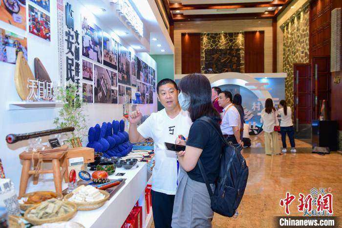會場外擺放的臨安特色產(chǎn)品?!《艧?攝