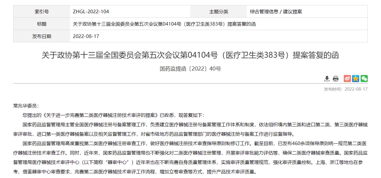 國(guó)家藥監(jiān)局:繼續(xù)加強(qiáng)對(duì)第二類醫(yī)療器械注冊(cè)的指導(dǎo)