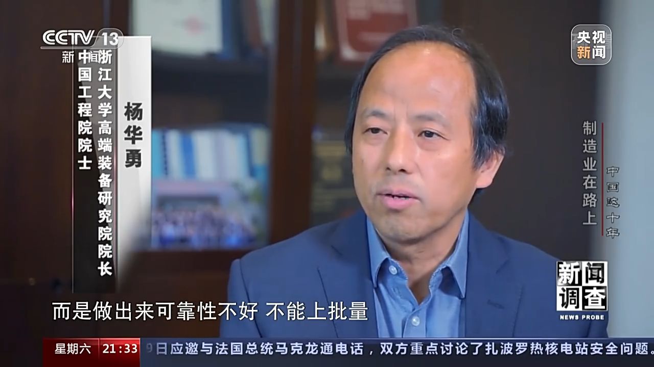 中國(guó)工程院院士 浙江大學(xué)高端裝備研究院院長(zhǎng) 楊華勇:大噸位的起重機(jī)、挖掘機(jī)大量進(jìn)口,咱們就沒有自己的,中國(guó)不是說(shuō)做不出來(lái),而是做出來(lái)可靠性不好,不能上批量。