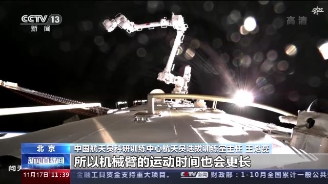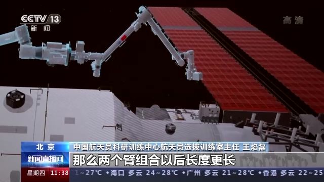中國航天員科研訓(xùn)練中心航天員選拔訓(xùn)練室主任 王焰磊:我們首次使用兩個機械臂,就是大臂小臂形成組合臂的狀態(tài)下支持出艙活動任務(wù)。因為大家可以想象一下,單臂的長度已經(jīng)很長了,那么兩個臂組合以后長度更長,它的柔性、剛性等和我們單臂狀態(tài)下是有一些區(qū)別的。在這種情況下載人去支持完成出艙任務(wù),也是我們做首次的一個驗證。