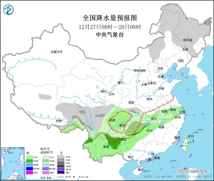 全國(guó)降水量預(yù)報(bào)圖(12月27日08時(shí)-28日08時(shí))