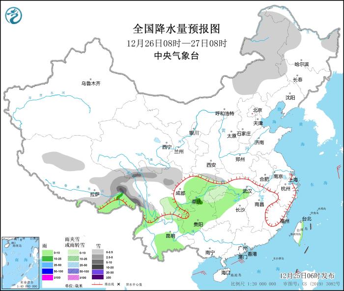 全國(guó)降水量預(yù)報(bào)圖(12月26日08時(shí)-27日08時(shí))