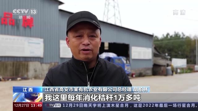 江西省高安市某有機農(nóng)業(yè)有限公司總經(jīng)理 胡柏林:我這里每年消化秸稈1萬多噸,用來做有機肥發(fā)酵。肥料現(xiàn)在出貨量每天是十來車,將近達到200多噸(每天)。