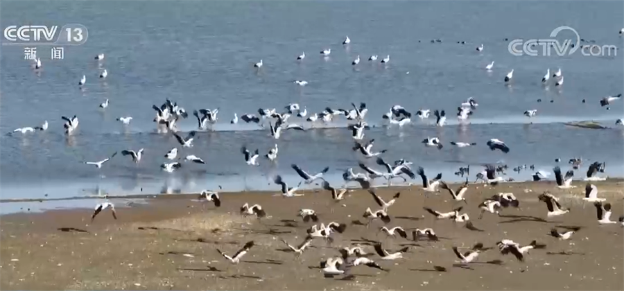 由于今年氣溫偏高,候鳥(niǎo)北遷的時(shí)間比往年提前了10天以上。在溫暖的陽(yáng)光下,候鳥(niǎo)們或在高空展翅,或在淺灘覓食,其中不乏各種珍稀鳥(niǎo)類(lèi)。湖面煙波浩渺,空中萬(wàn)鳥(niǎo)翔集,蔚為壯觀。
