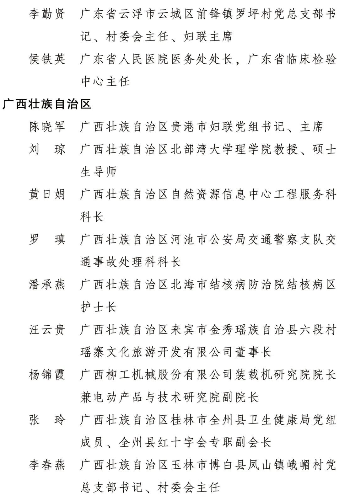 全國(guó)三八紅旗手標(biāo)兵名單