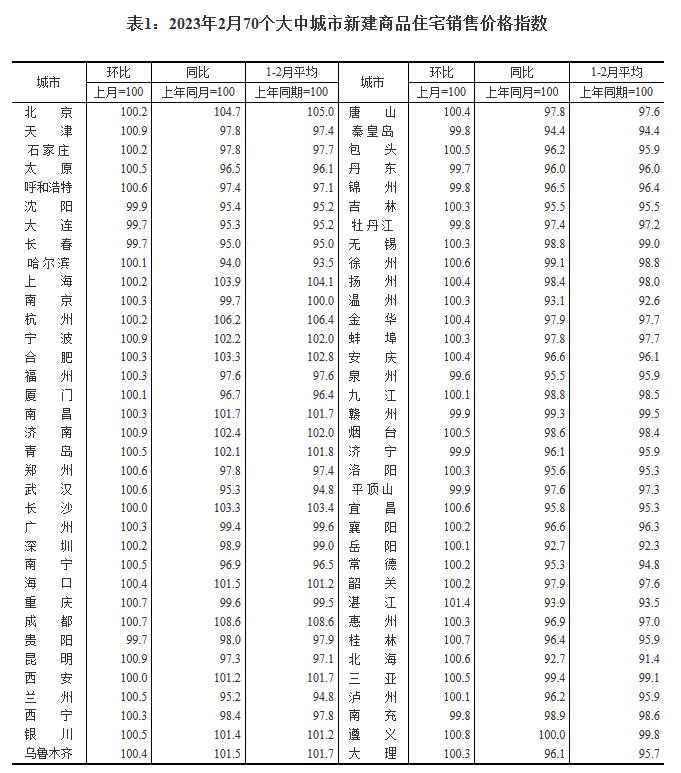 中新網(wǎng)3月16日電 16日,國(guó)家統(tǒng)計(jì)局公布2023年2月份70個(gè)大中城市商品住宅銷(xiāo)售價(jià)格變動(dòng)情況。國(guó)家統(tǒng)計(jì)局城市司首席統(tǒng)計(jì)師繩國(guó)慶解讀表示,2023年2月份,隨著政策效果逐步顯現(xiàn)及住房需求進(jìn)一步釋放,70個(gè)大中城市中商品住宅銷(xiāo)售價(jià)格環(huán)比上漲城市個(gè)數(shù)繼續(xù)增加,各線城市商品住宅銷(xiāo)售價(jià)格環(huán)比總體上漲,一線城市商品住宅銷(xiāo)售價(jià)格同比上漲、二三線城市同比降幅收窄。