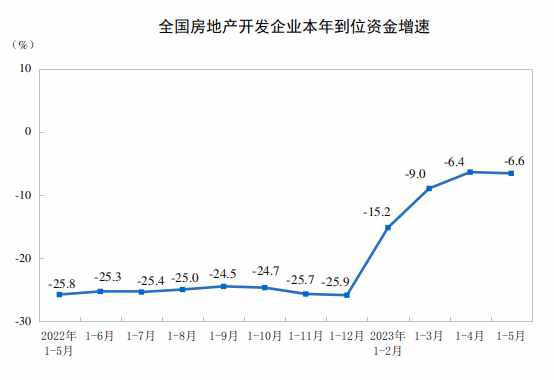 1—5月份,房地產(chǎn)開發(fā)企業(yè)房屋施工面積779506萬平方米,同比下降6.2%。其中,住宅施工面積548475萬平方米,下降6.5%。房屋新開工面積39723萬平方米,下降22.6%。其中,住宅新開工面積29010萬平方米,下降22.7%。房屋竣工面積27826萬平方米,增長19.6%。其中,住宅竣工面積20194萬平方米,增長19.0%。