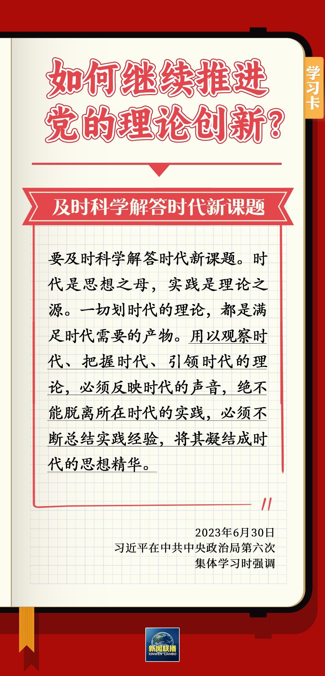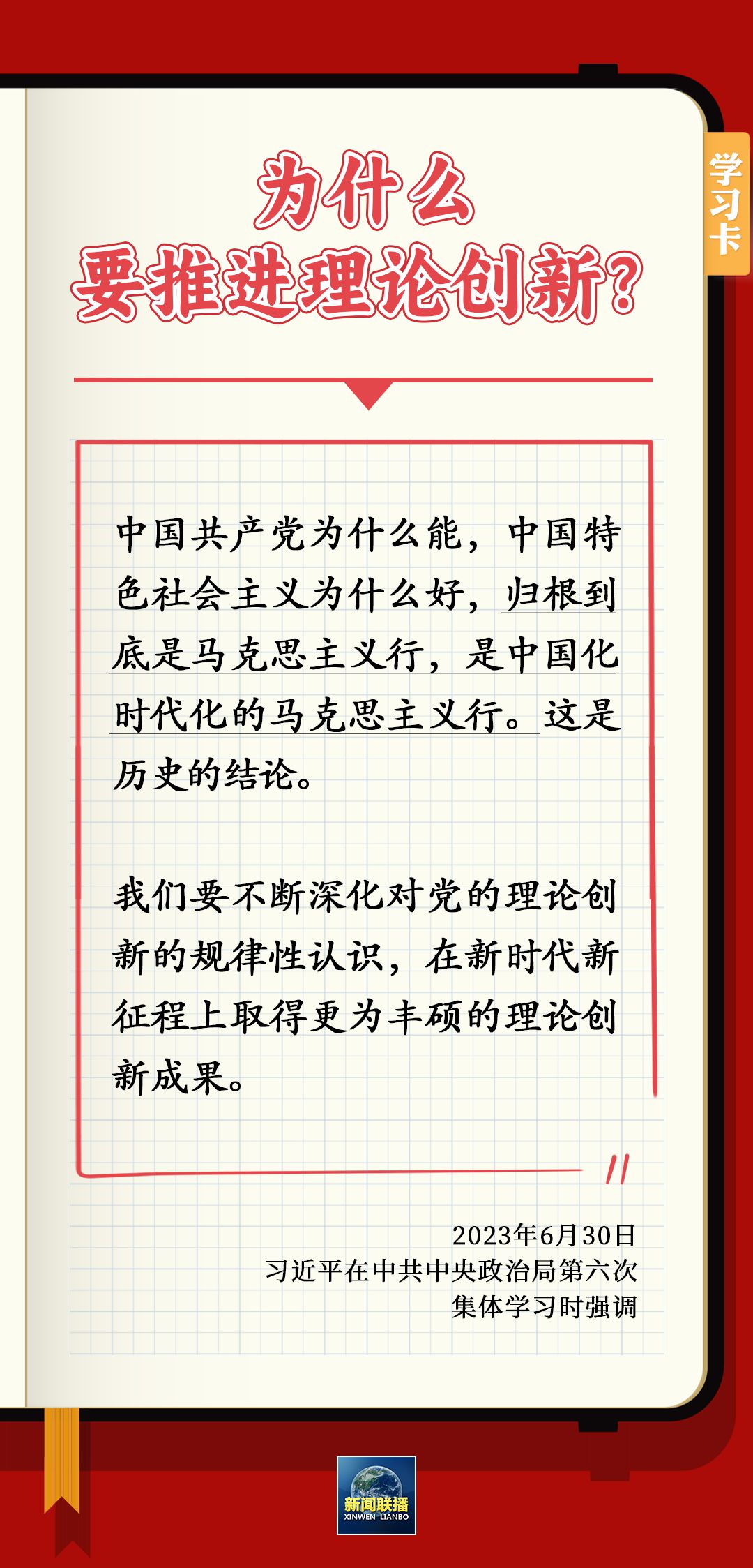 6月30日,習(xí)近平在主持中共中央政治局第六次集體學(xué)習(xí)時(shí)強(qiáng)調(diào),要不斷深化對(duì)黨的理論創(chuàng)新的規(guī)律性認(rèn)識(shí)。為什么要推進(jìn)理論創(chuàng)新?如何繼續(xù)推進(jìn)黨的理論創(chuàng)新?一起學(xué)習(xí)↓
