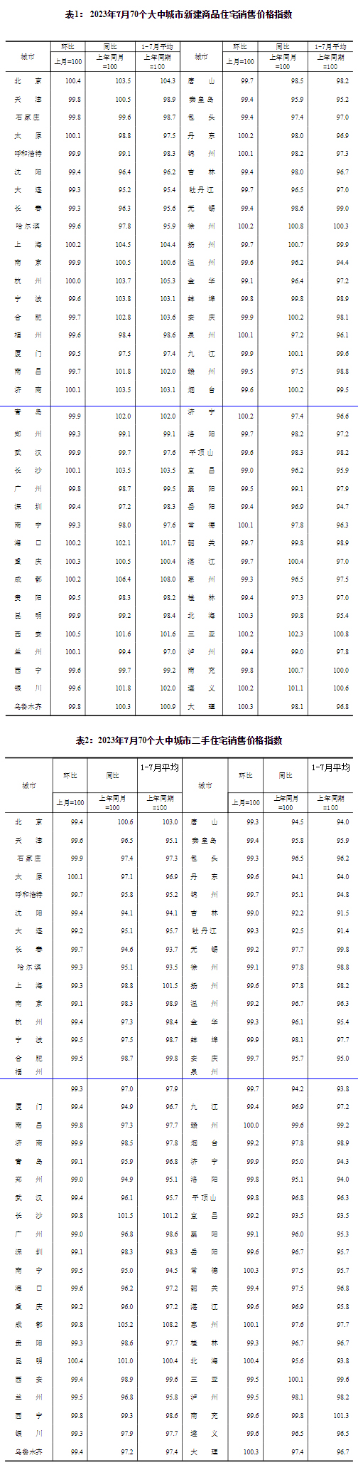 中新網(wǎng)8月16日電 國家統(tǒng)計(jì)局網(wǎng)站16日發(fā)布2023年7月份70個大中城市商品住宅銷售價格變動情況,國家統(tǒng)計(jì)局城市司首席統(tǒng)計(jì)師繩國慶該統(tǒng)計(jì)數(shù)據(jù)進(jìn)行解讀。2023年7月份,70個大中城市商品住宅銷售價格上漲城市個數(shù)減少,各線城市商品住宅銷售價格環(huán)比持平或下降、同比有漲有降。