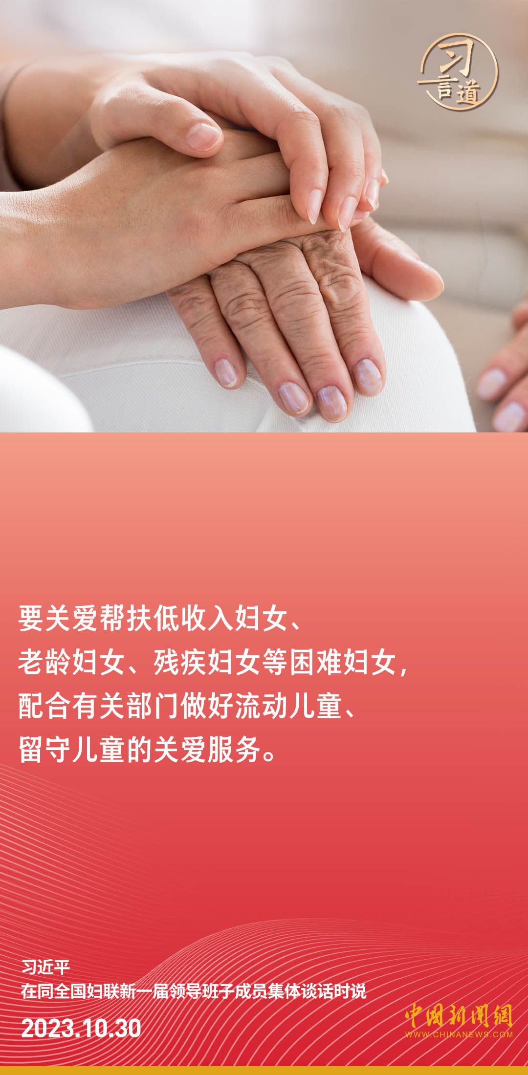 中共中央總書記、國家主席、中央軍委主席習近平30日下午在中南海同全國婦聯新一屆領導班子成員集體談話并發(fā)表重要講話。習近平強調——