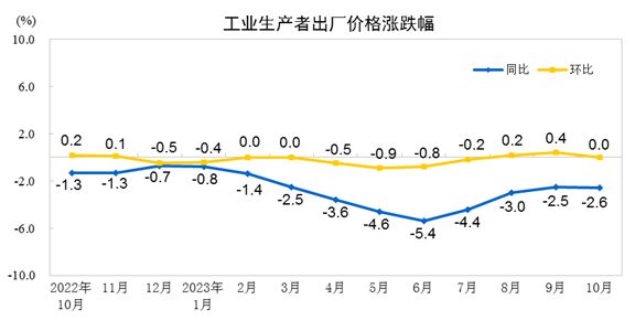10月份工業(yè)生產(chǎn)者出廠價(jià)格同比下降2.6% 環(huán)比持平
