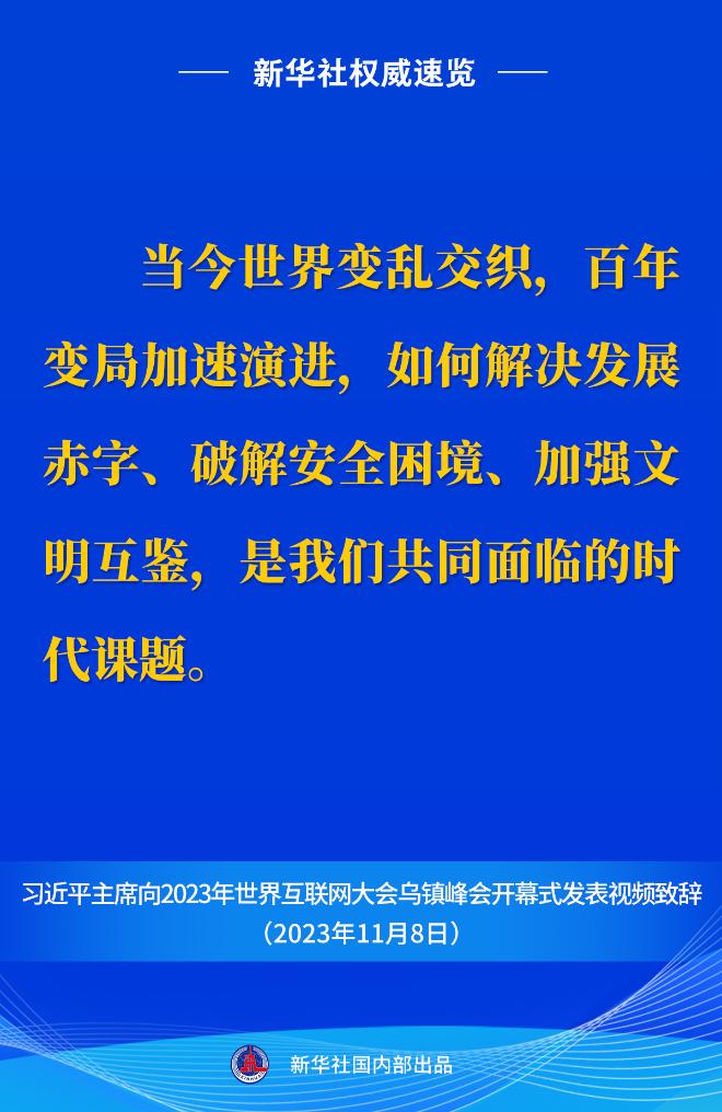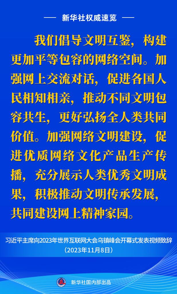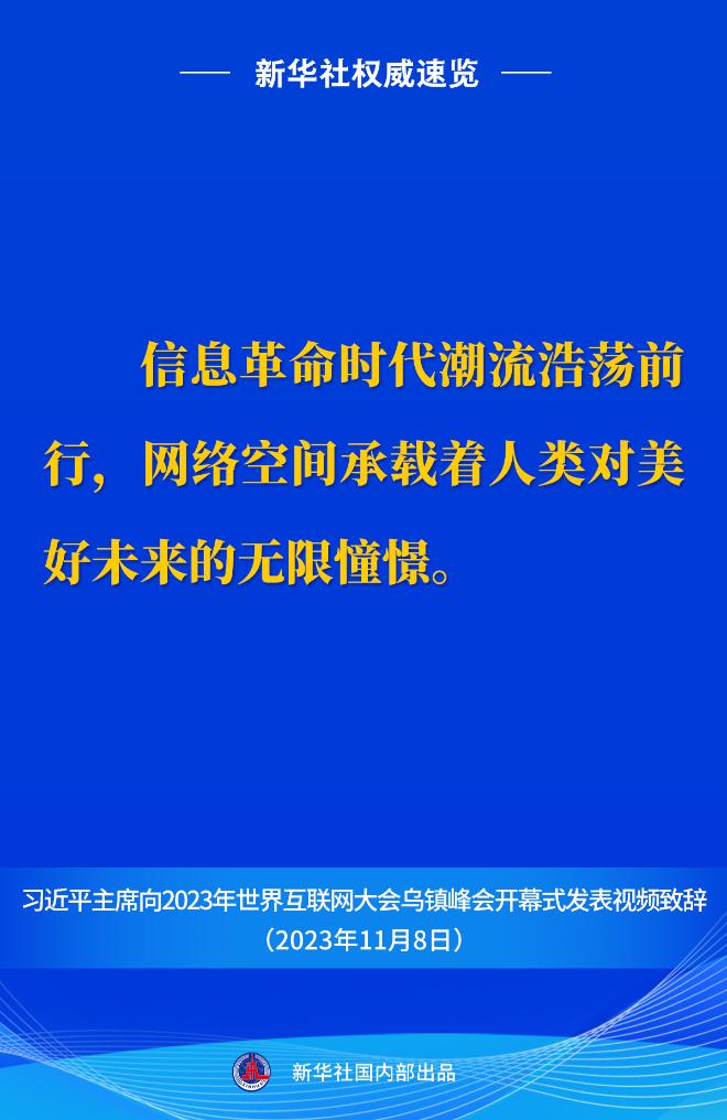 新華社權威速覽丨習近平主席向2023年世界互聯(lián)網大會烏鎮(zhèn)峰會開幕式視頻致辭金句