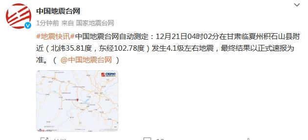 甘肅臨夏州積石山縣附近發(fā)生4.1級(jí)左右地震