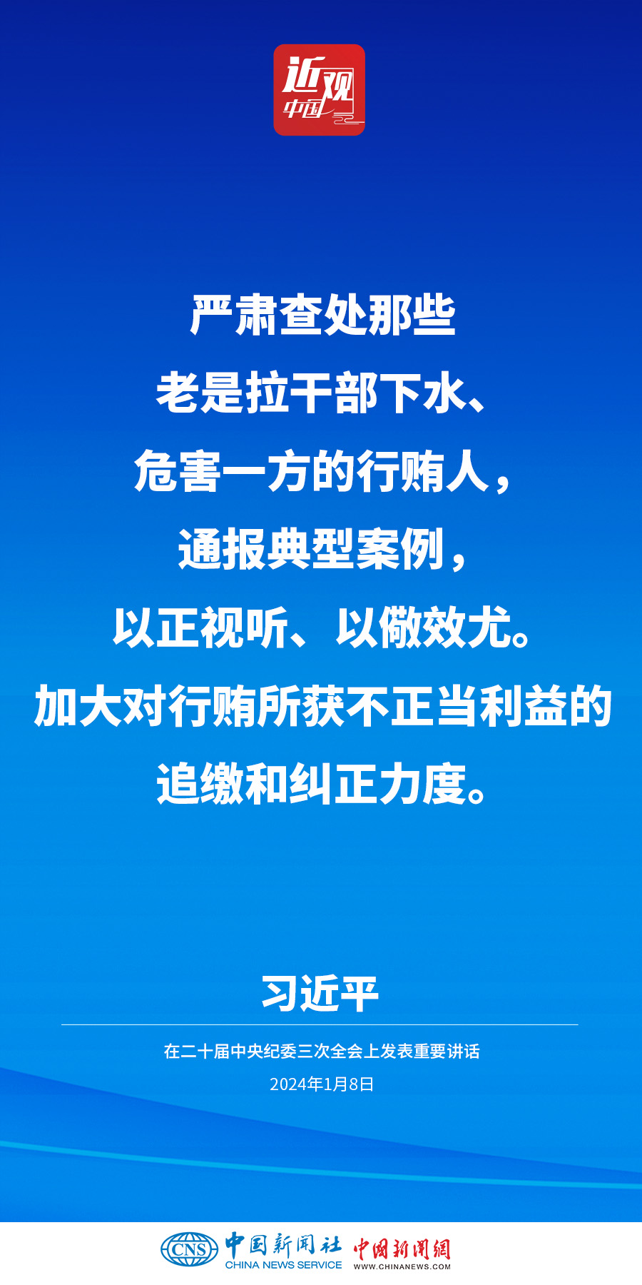 中共中央總書記、國家主席、中央軍委主席習(xí)近平8日上午在中國共產(chǎn)黨第二十屆中央紀律檢查委員會第三次全體會議上發(fā)表重要講話。他強調(diào)——