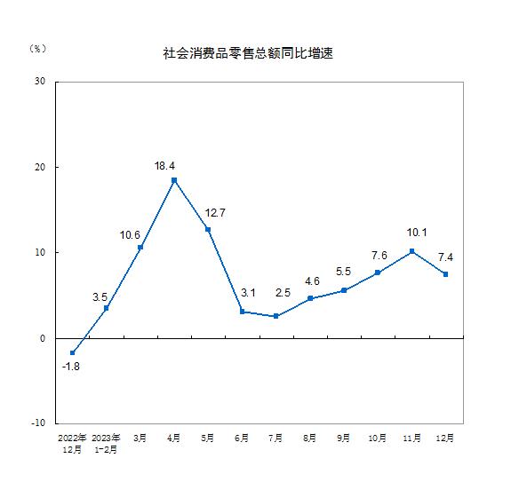 國家統(tǒng)計局:2023年12月份社會消費品零售總額增長7.4%
