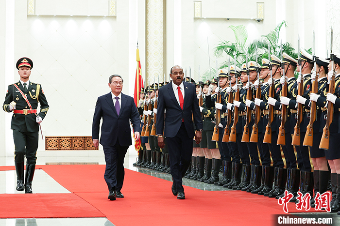 會談前,李強(qiáng)在人民大會堂北大廳為布朗舉行歡迎儀式。