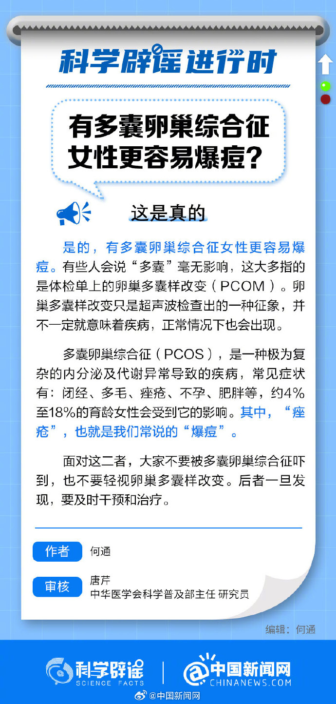 中新真探:有多囊卵巢綜合征女性更容易爆痘嗎?