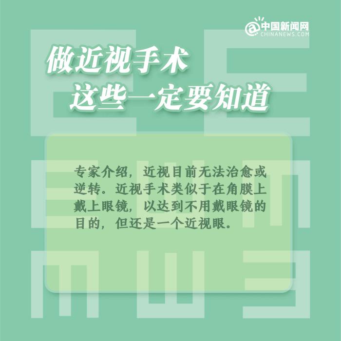 中新網(wǎng)2月4日電 ①近視手術,分為角膜激光手術和眼內(nèi)鏡植入手術;②一般來說,近視手術的時間建議在18-50歲之間;③術后1個月內(nèi),避免異物進入眼睛,不要揉眼和劇烈運動;④術后仍應注意用眼衛(wèi)生、飲食習慣、生活習慣等,要經(jīng)常放眼遠眺。