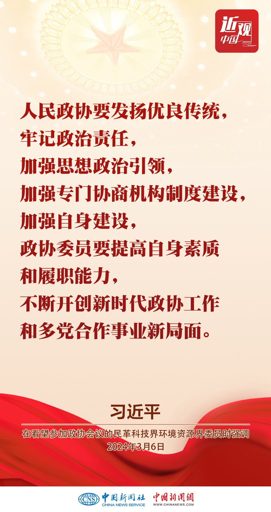 3月6日,中共中央總書記、國(guó)家主席、中央軍委主席習(xí)近平看望參加全國(guó)政協(xié)十四屆二次會(huì)議的民革、科技界、環(huán)境資源界委員,并參加聯(lián)組會(huì),聽取意見和建議。他強(qiáng)調(diào)——