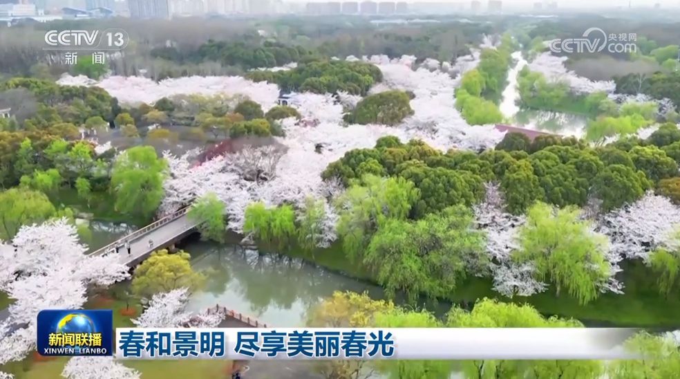 在上海寶山區(qū),公園里迎來(lái)盛花期的櫻花,美不勝收,這片櫻花的海洋吸引人們徜徉其中、駐足拍照。在陜西西安,這條兩公里長(zhǎng)的道路兩旁,數(shù)百棵櫻花樹(shù)競(jìng)相綻放,延綿成一片花海,市民和車(chē)輛從中經(jīng)過(guò),享受著古城春天這抹浪漫的色彩。在河北滄州,梨花盛開(kāi),雪白的梨花令人陶醉,眾多游客前來(lái)感受春日美景。