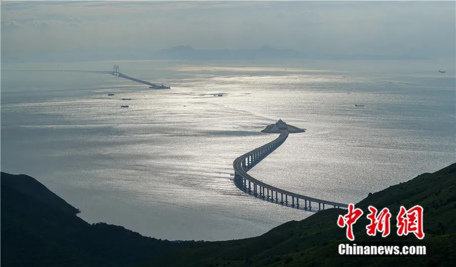 在昂坪纜車遠眺港珠澳大橋。中新社記者 張煒 攝