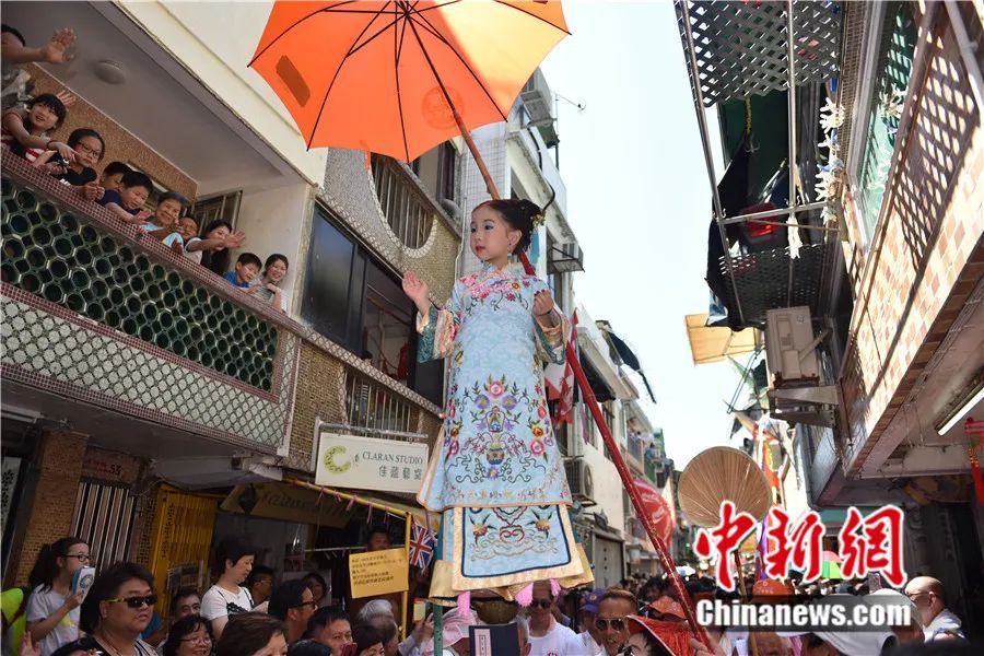 長洲飄色巡游。中新社記者 張煒 攝