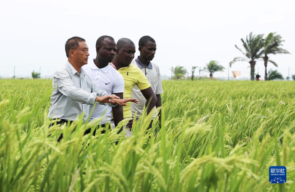 2022年10月29日,在布隆迪布班扎省基航加縣,中國(guó)水稻專家但松柏(左一)指導(dǎo)當(dāng)?shù)剞r(nóng)民種植水稻。新華社記者 董江輝 攝