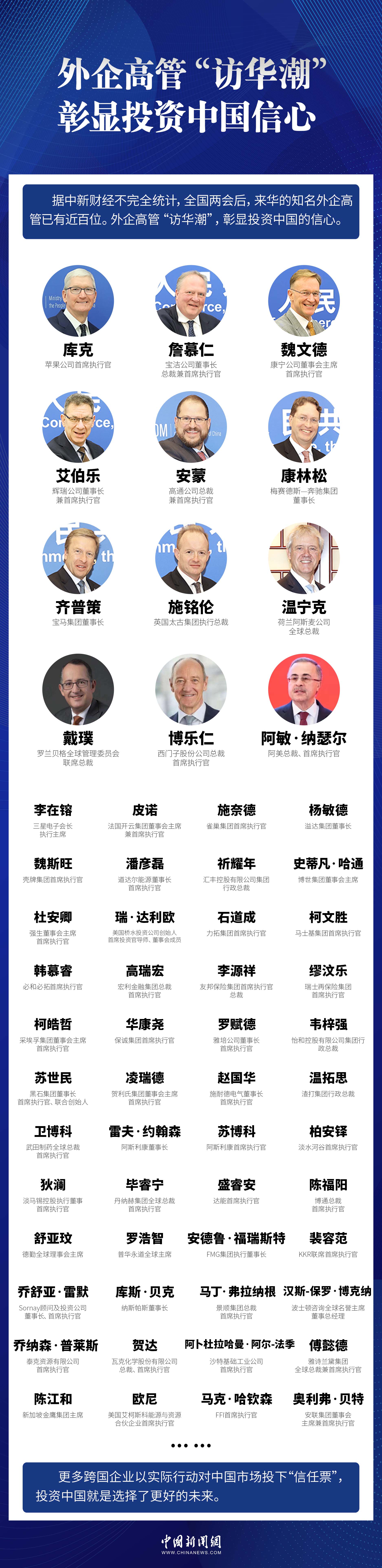 從北京釣魚臺國賓館到海南博鰲,由北及南,外企高管們奔走在中華大地上,活躍在各大經(jīng)貿(mào)論壇、工廠園區(qū)。在這個春天里來中國,已然成為一股潮流。