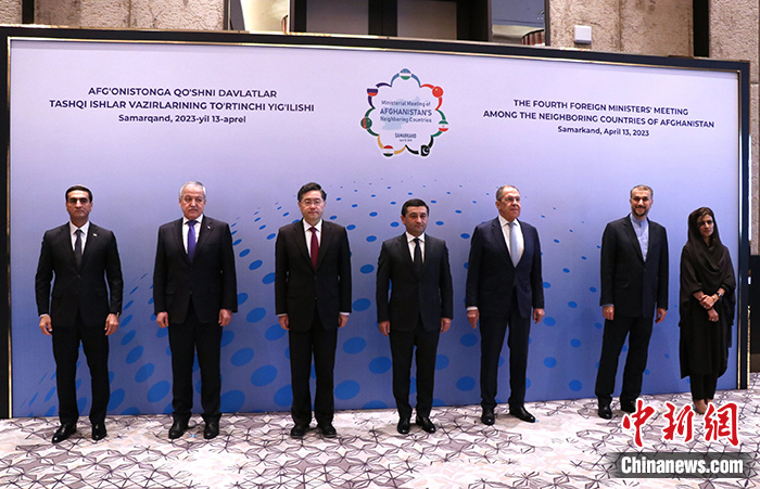 中新社烏茲別克斯坦撒馬爾罕4月13日電 (記者 張碩)當?shù)貢r間4月13日,中國國務委員兼外長秦剛在撒馬爾罕出席第四次阿富汗鄰國外長會。烏茲別克斯坦代外長賽義多夫主持會議,俄羅斯外長拉夫羅夫、伊朗外長阿卜杜拉希揚、塔吉克斯坦外長穆赫里丁、土庫曼斯坦第一副外長哈吉耶夫、巴基斯坦外交國務部長希娜出席。